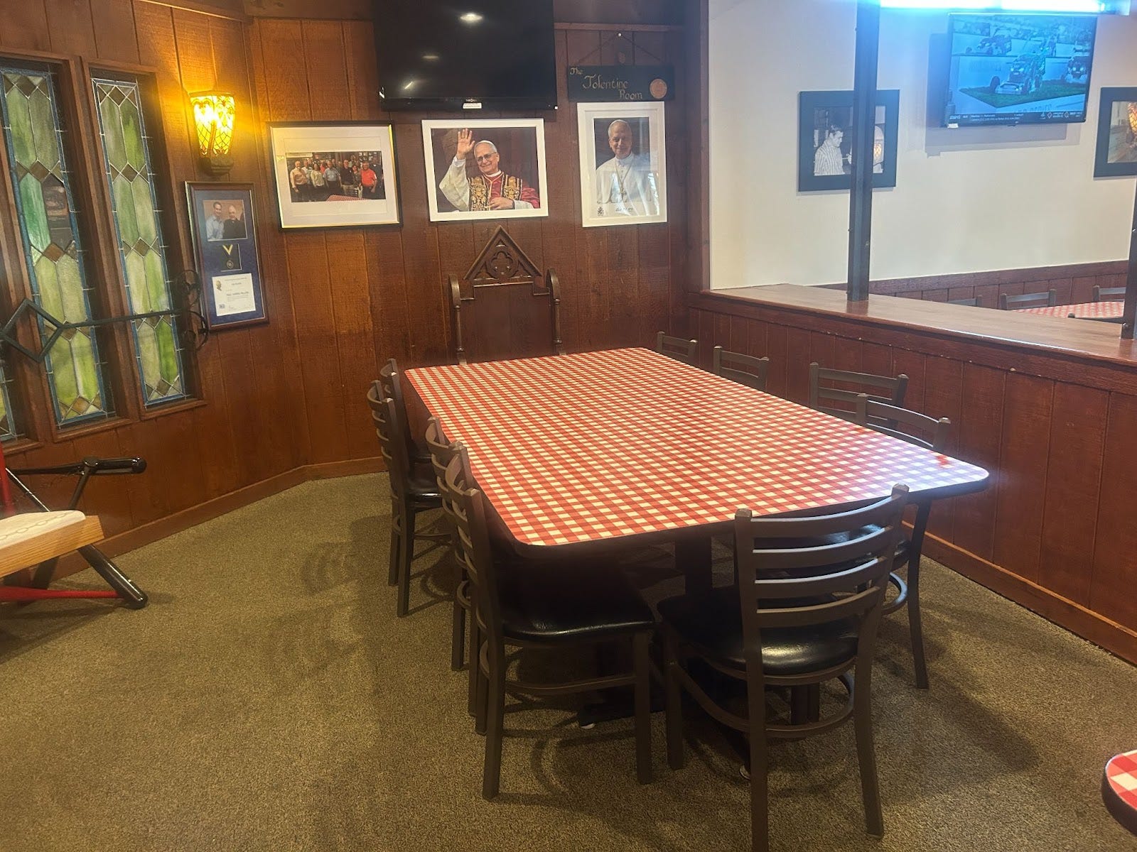 There’s a picture of Pope Leo visiting Aurelio’s with friends and family during a trip to Chicago last August. It’s hanging beside two official papal portraits. And there’s a throne at the head of the table.