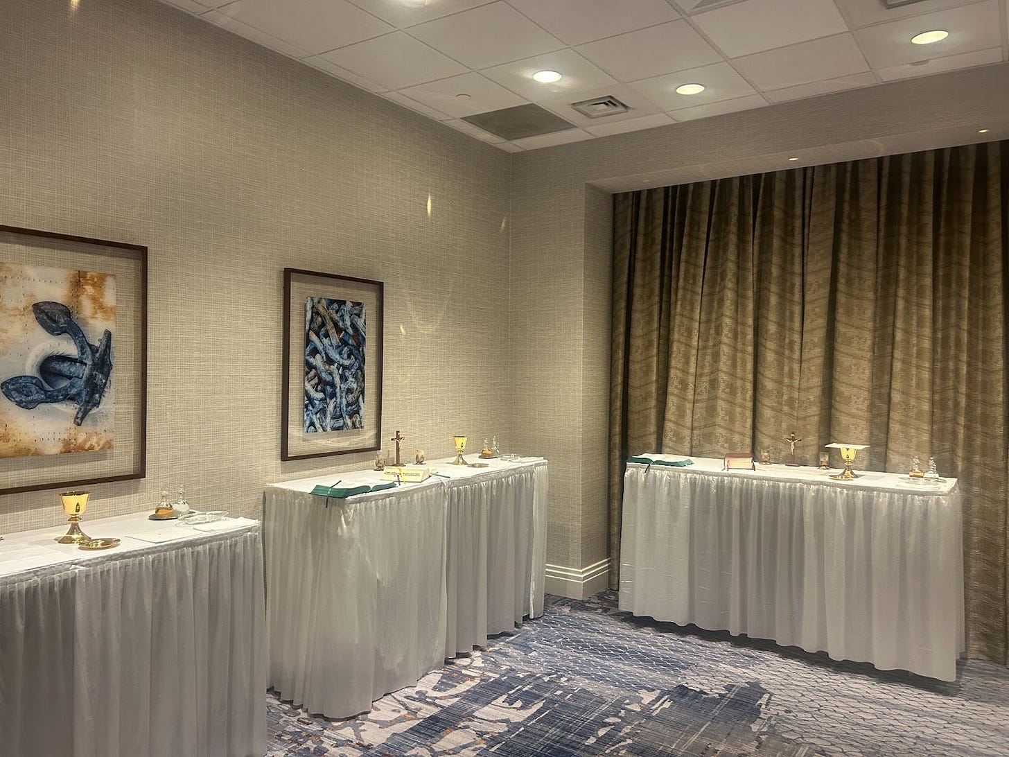 Dought and his team are some of the first USCCB staff members to arrive for the conference. They begin setting up the main chapel, adoration chapel, and the rooms for private Mass on Friday to prepare for the bishops who begin arriving over the weekend.