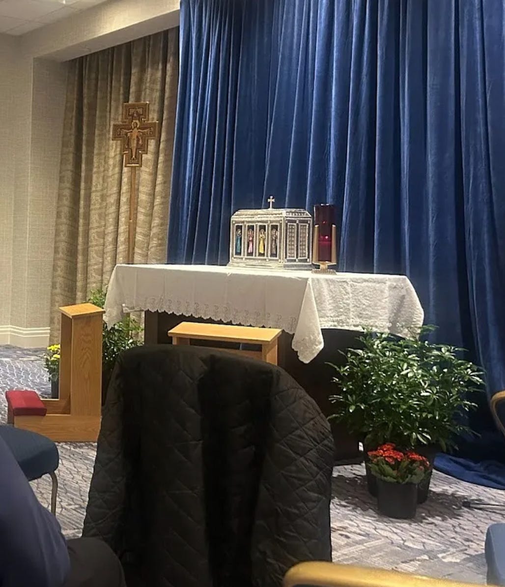 “We are one of the first teams here … when it comes to set up,” Dought said. “On Friday, we set up two rooms where bishops and priests can celebrate individual Masses and then set up our main chapel, where we have concelebrated Masses.