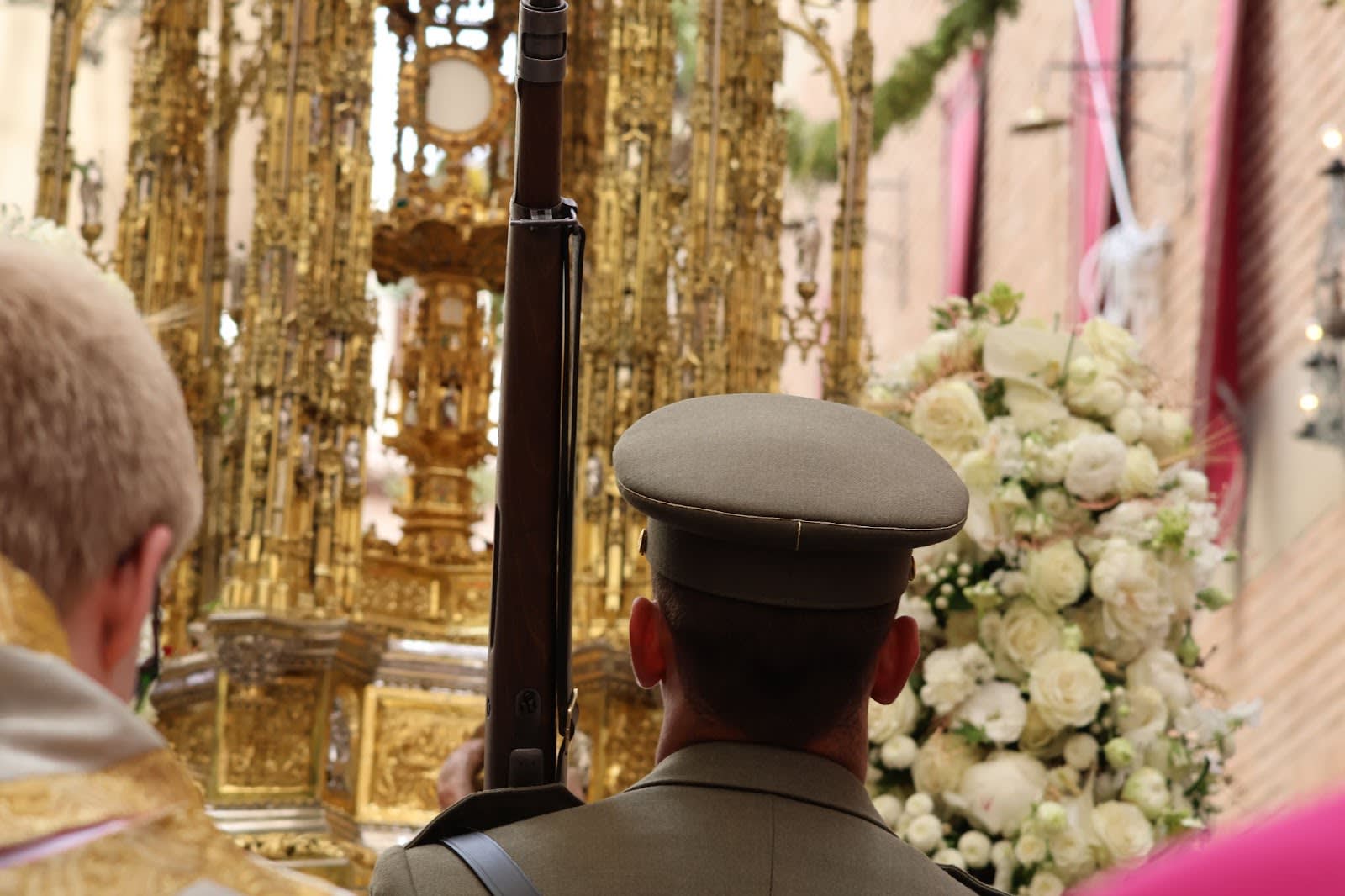 Each year, the carriage bearing the Blessed Sacrament is escorted by Spanish law enforcement and military. Some servicemembers could be seen weeping and joining in the hymns as they performed their duties.