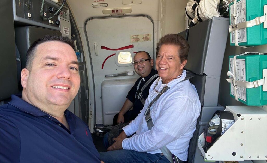 The fourth shipment was made on the weekend after Thanksgiving. Father Richard Vigoa, pastor of St. Augustine Parish in Coral Gables, led previous aid shipments to Cuba, along with donors Frank and JoAnn del Río. Father José Espino, rector of the National Shrine of Our Lady of Charity in Miami, made a second flight, accompanied by Sister Eva Pérez-Puelles of the Daughters of Charity of St. Vincent de Paul in Miami.