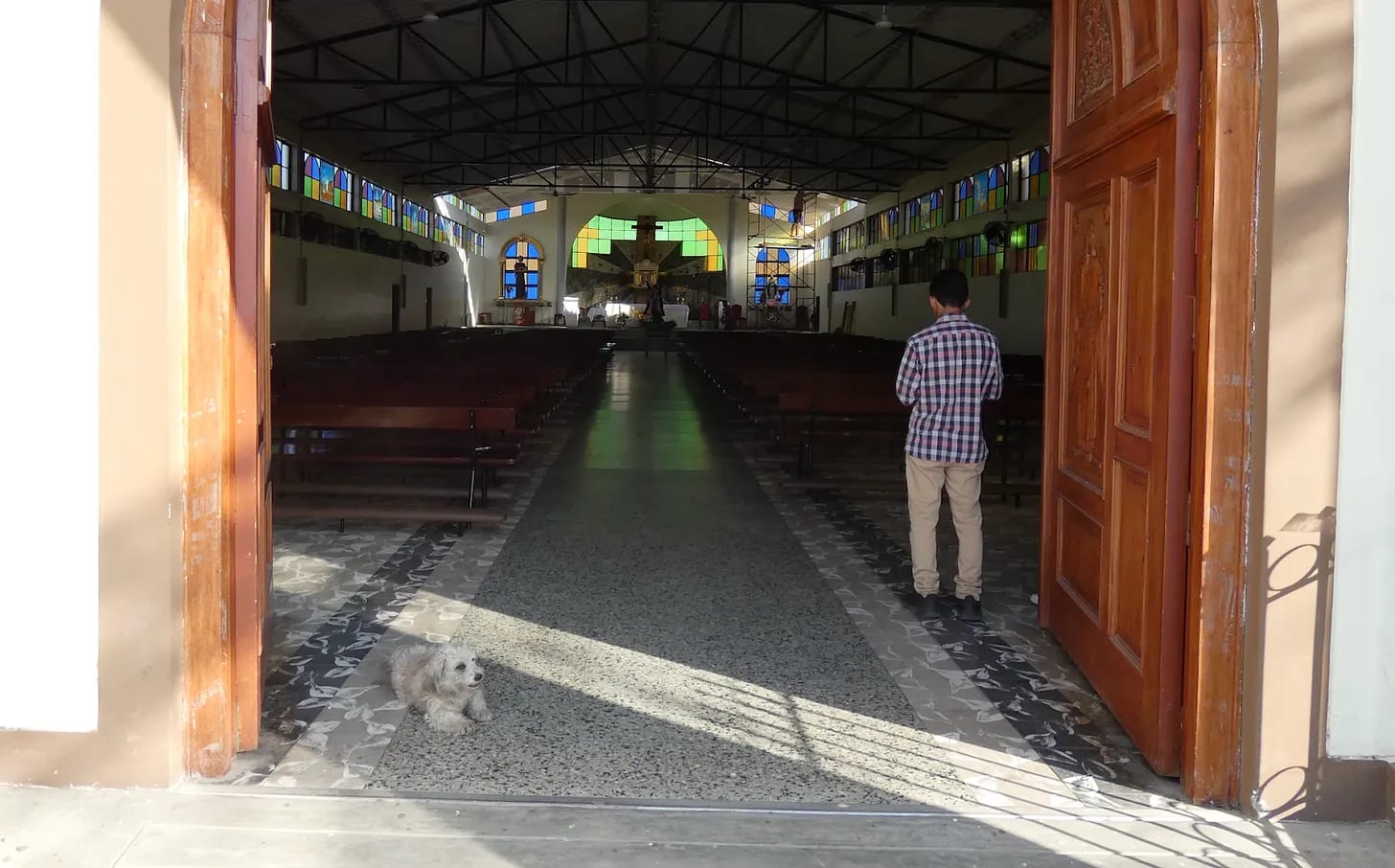 My driver’s name was Eduardo. Just as I requested, he took me to Pimental’s small parish church, where I thought I’d make a visit to the Lord before hitting the surf. Eduardo was excited about that.