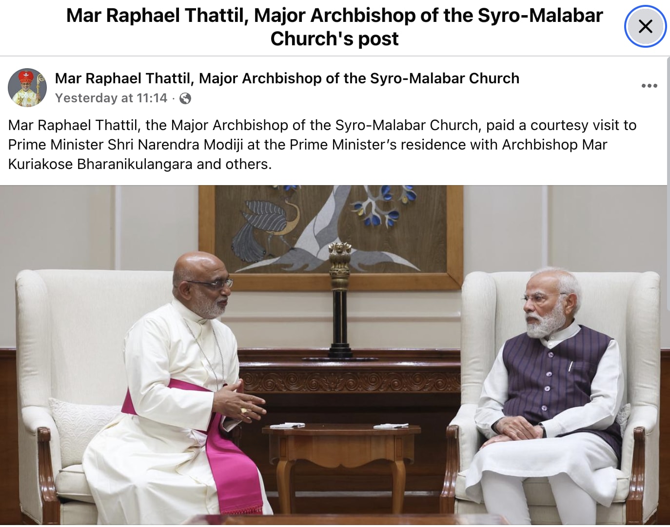 The Indian news site Onmanorama reported that the Syro-Malabar bishops submitted a request to Modi to invite Pope Leo XIV to India.